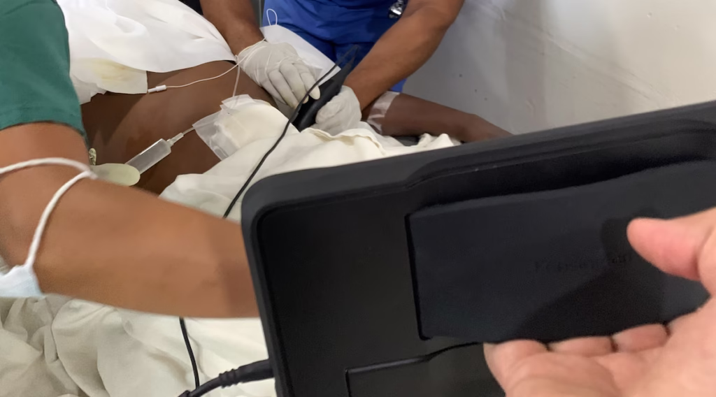 POCUS served two purposes: First, to definitively diagnose pathology that could benefit from surgical intervention, and second, to enhance operative planning and reduce risk while also optimizing the use of scarce supplies/resources. The emergency physicians provided support to the surgical teams on day 1 of the mission during patient triage, as well as intra- and post-operatively when requested by the surgical teams. Separately, POCUS was used to assist local personnel in other medical decision making including emergency and obstetrical care, but details of those uses are not reported in this study. (Figures 1-4)
