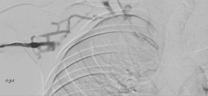 Treatment of thrombosis in the setting of MTS involves catheter-delivered thrombolytics and percutaneous mechanical thrombectomy, either with or without angioplasty and stent placement [1]. Due to the pulsatile nature of mechanical arterial obstruction, MTS responds poorly to conservative management with anticoagulation alone [1]. Failure to treat MTS quickly could lead to post-thrombotic syndrome (PTS), which is thought to occur as a result of valvular incompetence and venous hypertension and leads to leg swelling and chronic skin changes such as hyperpigmentation, induration, and ulceration [5]. Meta-analysis has demonstrated the superiority of catheter-directed thrombolysis when compared to anticoagulation alone for the prevention and treatment of PTS [6].