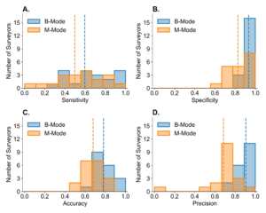 A number of groups, including our own, have developed DL models using CNN to automatically quantify B-line scores from POC lung ultrasound video clips. Recently, B. Christiana et al. developed a supervised CNN trained on 400 lung ultrasound clips to calculate total BLS in emergency department patients. They achieved a binary classification (B-lines present versus absent) sensitivity and specificity of 93% and 96% compared to an expert interpreter. In multiclass classification of B-line severity their DL model achieved a linear weighted kappa of 0.65 vs an interrater reliability of 0.87 [26]. Our own group has developed a DL model that uses a transformer block architecture CNN trained on 91 hemodialysis patients with ESRD to calculate total BLS and severity level. In preliminary results, our DL model demonstrated a binary classification (presence versus absence of B-lines) accuracy of 87.3% and a total BLS classification (scored 0-4) accuracy of 60.5% [27].